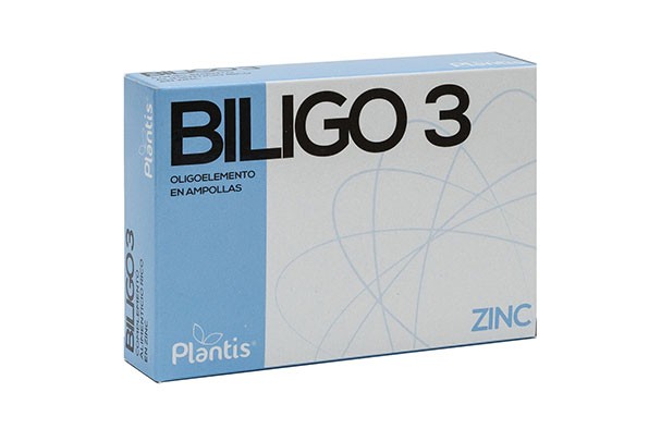 Propiedades: Biligo 3 (Zinc) de Plantis es un suplemento utilizado para combatir las consecuencias de la oxidación del organismo. Sirve como catalizador indispensable para las acciones de numerosas enzimas, actúa a nivel de glándulas endocrinas y genitales, sólo ejerce un efecto regulador de las funciones hipofisiarias.