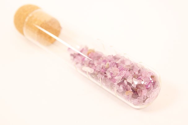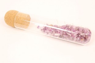 Tubo de cristal con chips de mineral para el tratamiento de agua. Realiza tu propio elixir de mineral o gemas para que el agua recoja la vibración energética del mineral, beneficiándonos de sus propiedades.