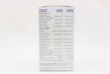 Ingredientes: cultivo de bacterias (21.000 mill. de microorganismos viables por cápsula, ver información nutricional) (en contacto con leche y soja), inulina (de raiz de achicoria, Cichorium intybus), arabinogalactano (de Larix laricinia), antiaglomerantes (dióxido de silicio y estereato de magnesio vegetal), almidón de patata, antioxidante (ácido L-ascórbico), cápsula vegetal entérica PH5D (agente de recubrimiento: hidroxipropilmetilcelulosa; solución acuosa para protección entérica; agua purificada.