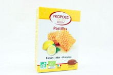 Propiedades: pastillas para suavizar garganta y vías respiratorias superiores. El limón contiene altas dosis de vitamina C, teniendo efectos contra las infecciones y en muchas enfermedades respiratorias. Es además antioxidante y bactericida. La miel de abeja alivia la garganta, tiene propiedades antibacterianas y es un remedio natural para la tos. El propóleo cuenta con propiedades medicinales y farmacológicas, muy eficaces en infecciones de las vías respiratorias altas, y garganta.